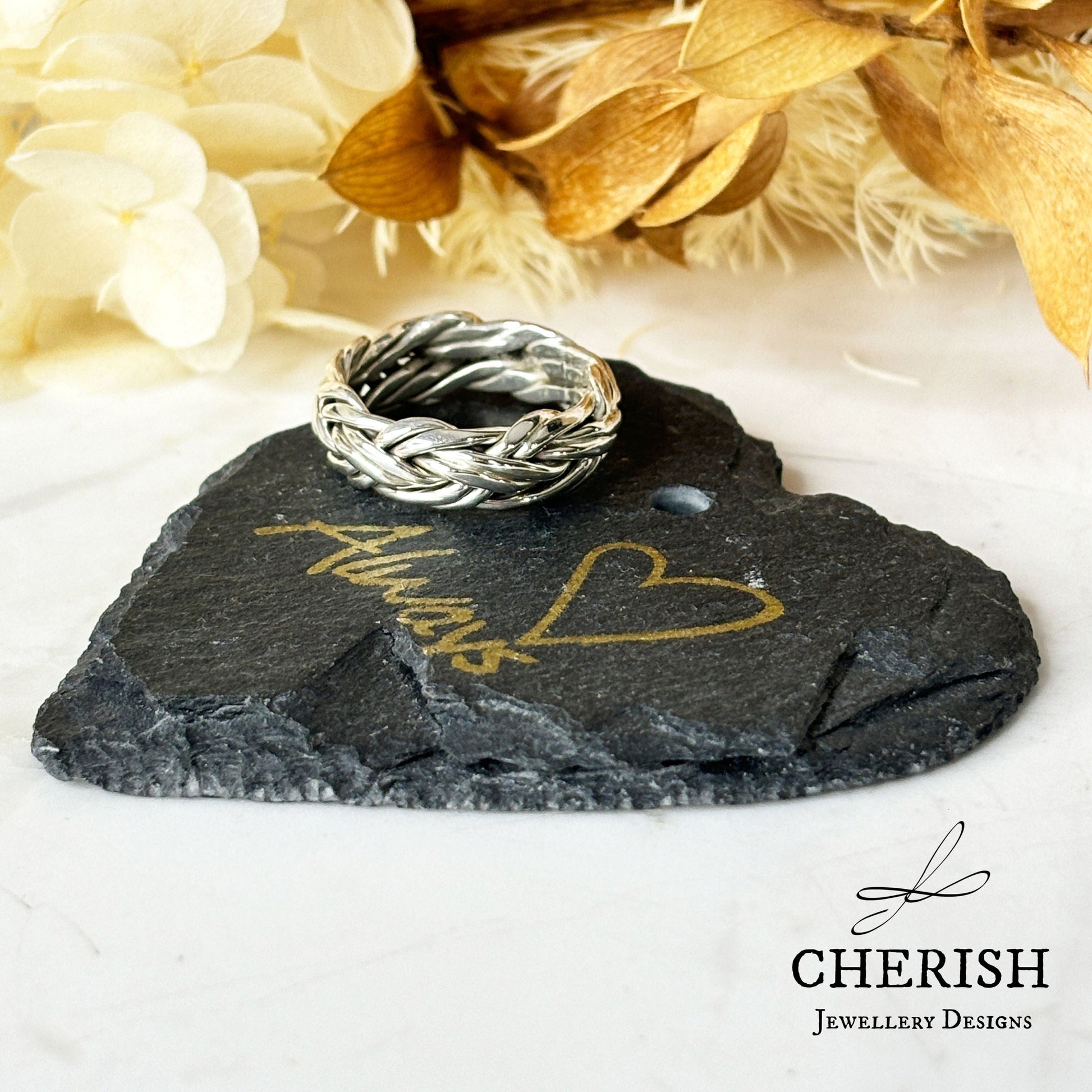 Add a touch of charm to any outfit with our Braided Band Sterling Silver Ring.