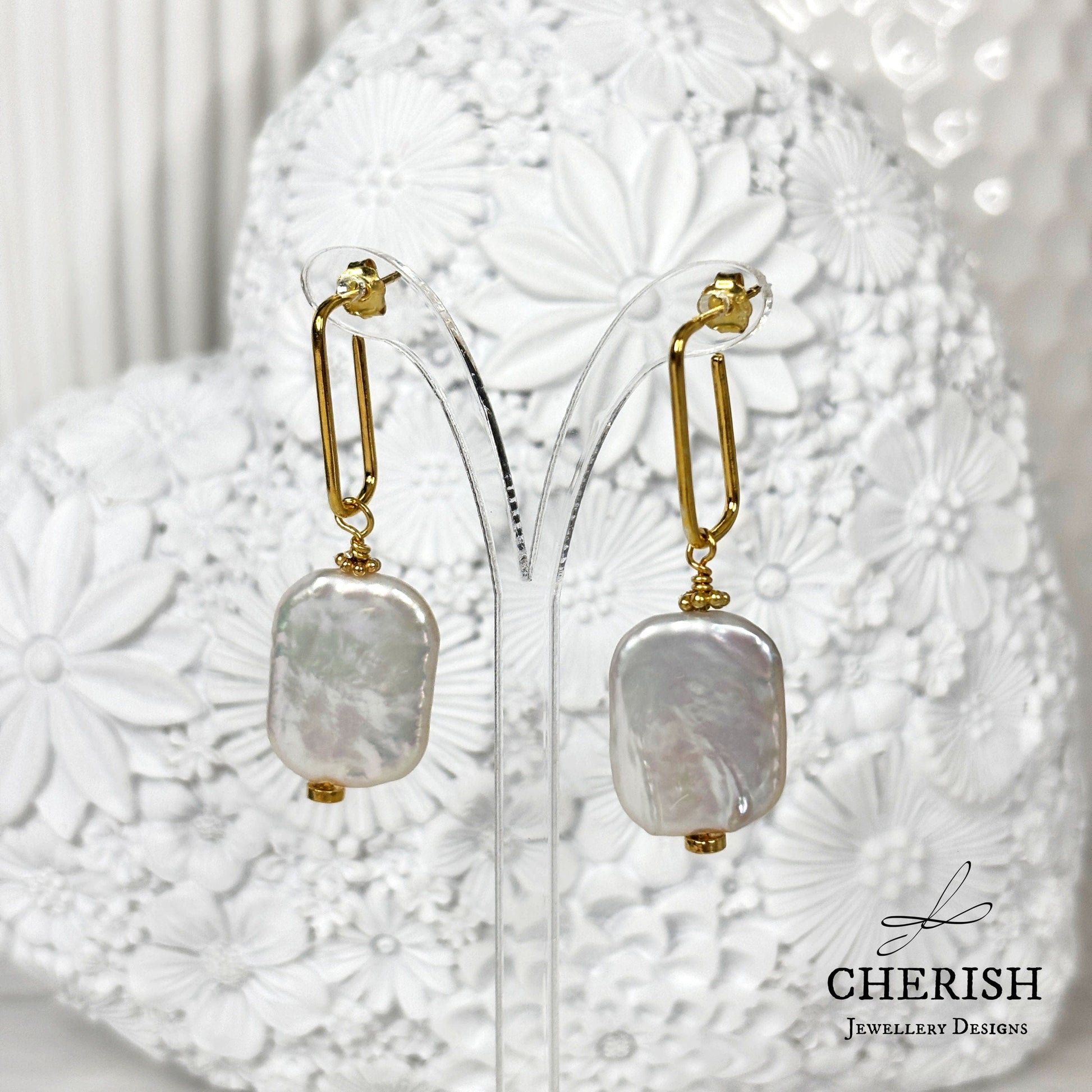 These playfully modern drops feature geometric sterling silver paperclip links anchoring a graceful rectangular freshwater pearl. And the best part? You get two pairs of earrings in one! Just slide off the pearl drop for a simple paperclip earring. Available in polished sterling silver or warm gold vermeil.