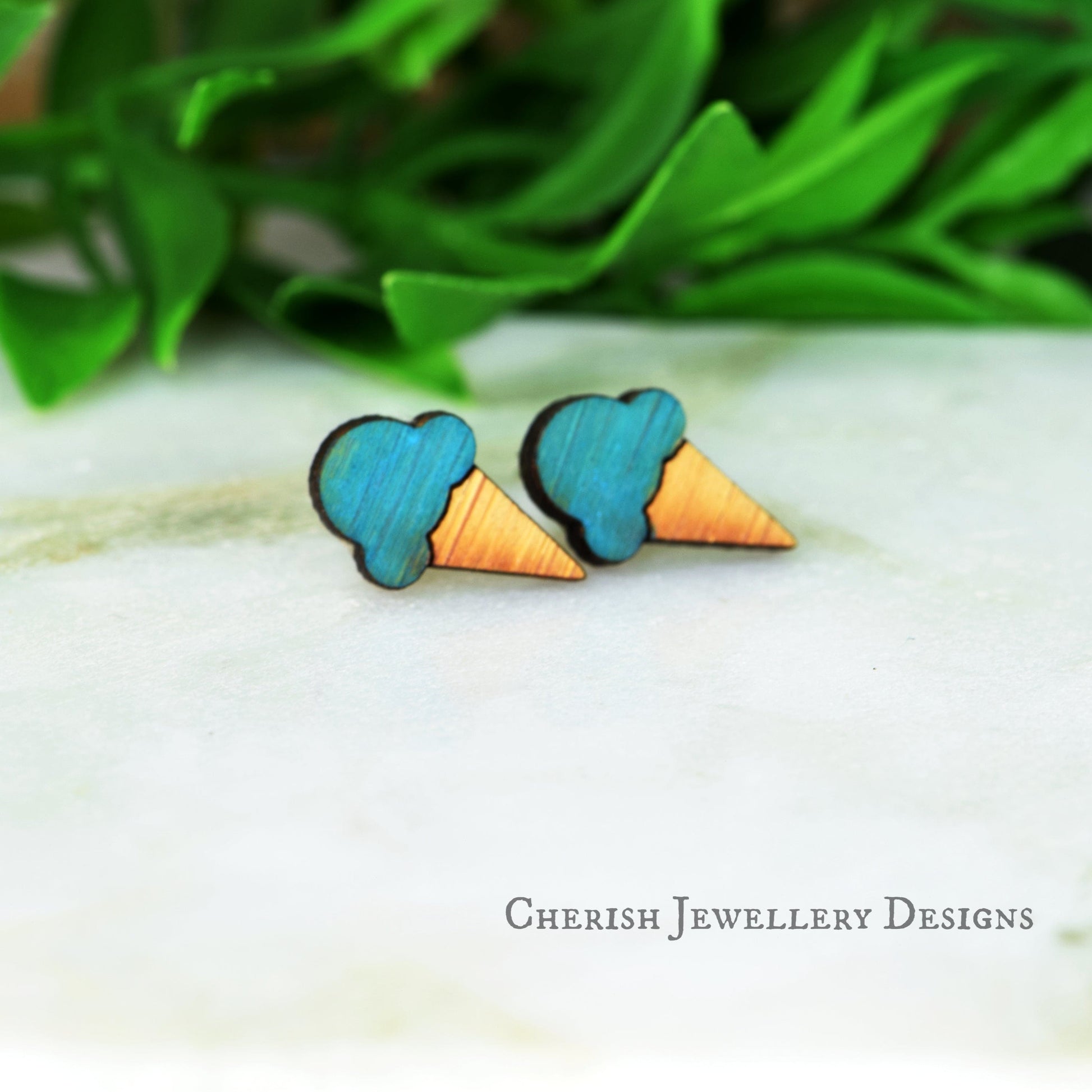 I love ice-cream! I really am a butterscotch/caramel fan but with my little ice-cream stud earrings I decided to go with pretty colours instead. I have 6 colour options: Vanilla, Strawberry, Blueberry, Mint, Bubblegum and Peach but I can do custom colours on request.