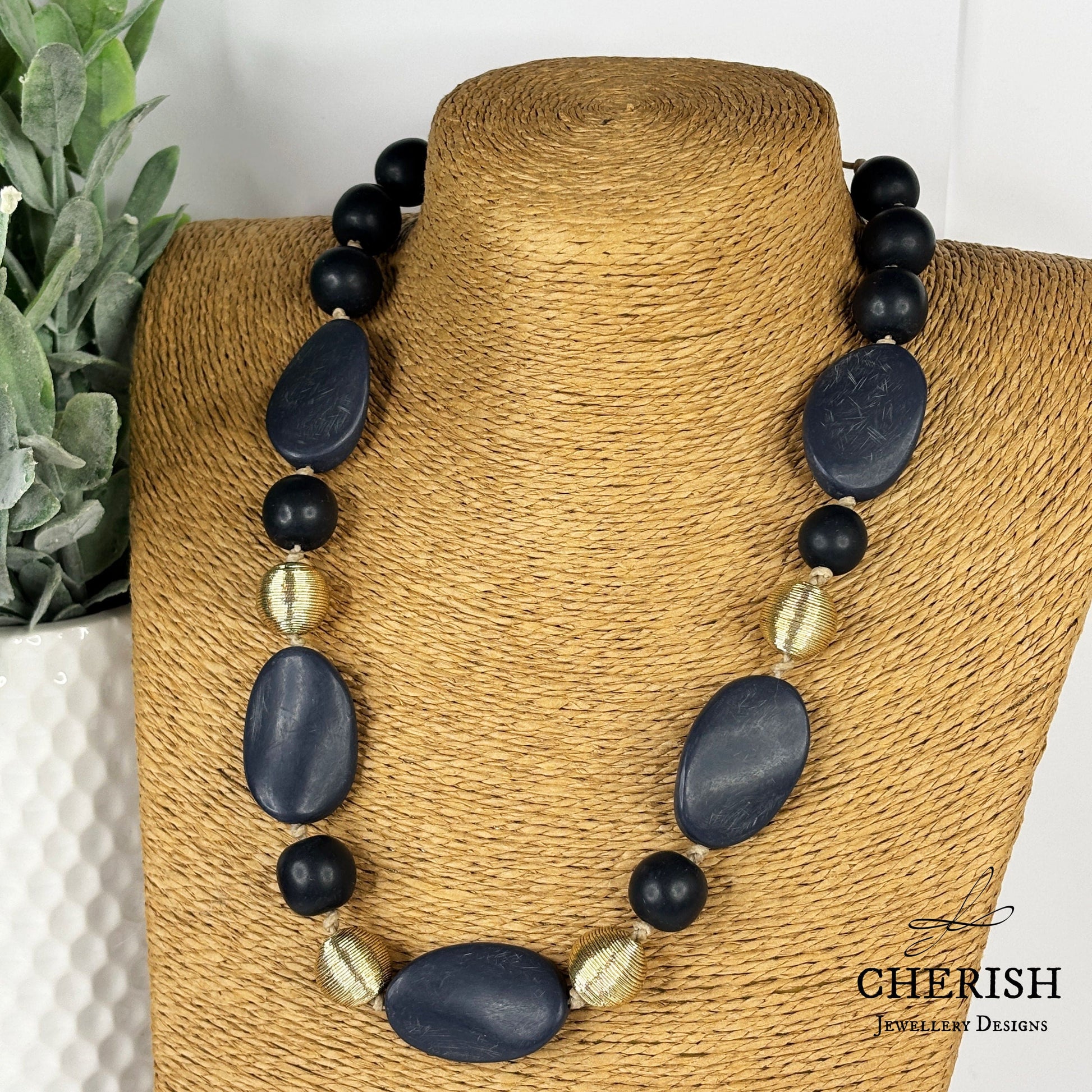 The Iris Resin Necklace blends Grecian charm with playful style, featuring resin beads accented by gleaming gold.