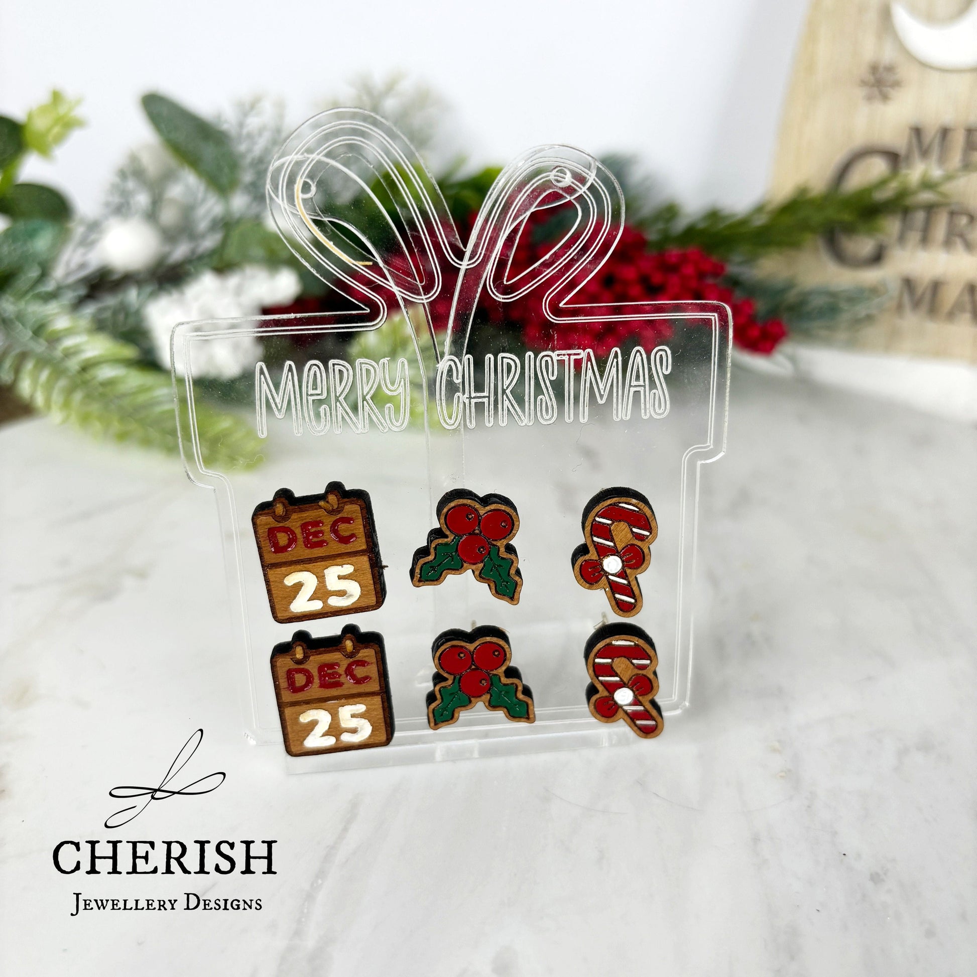 Featuring 3 pairs of festive and fun Christmas stud earrings, you can mix and match to perfectly accessorize any holiday outfit.