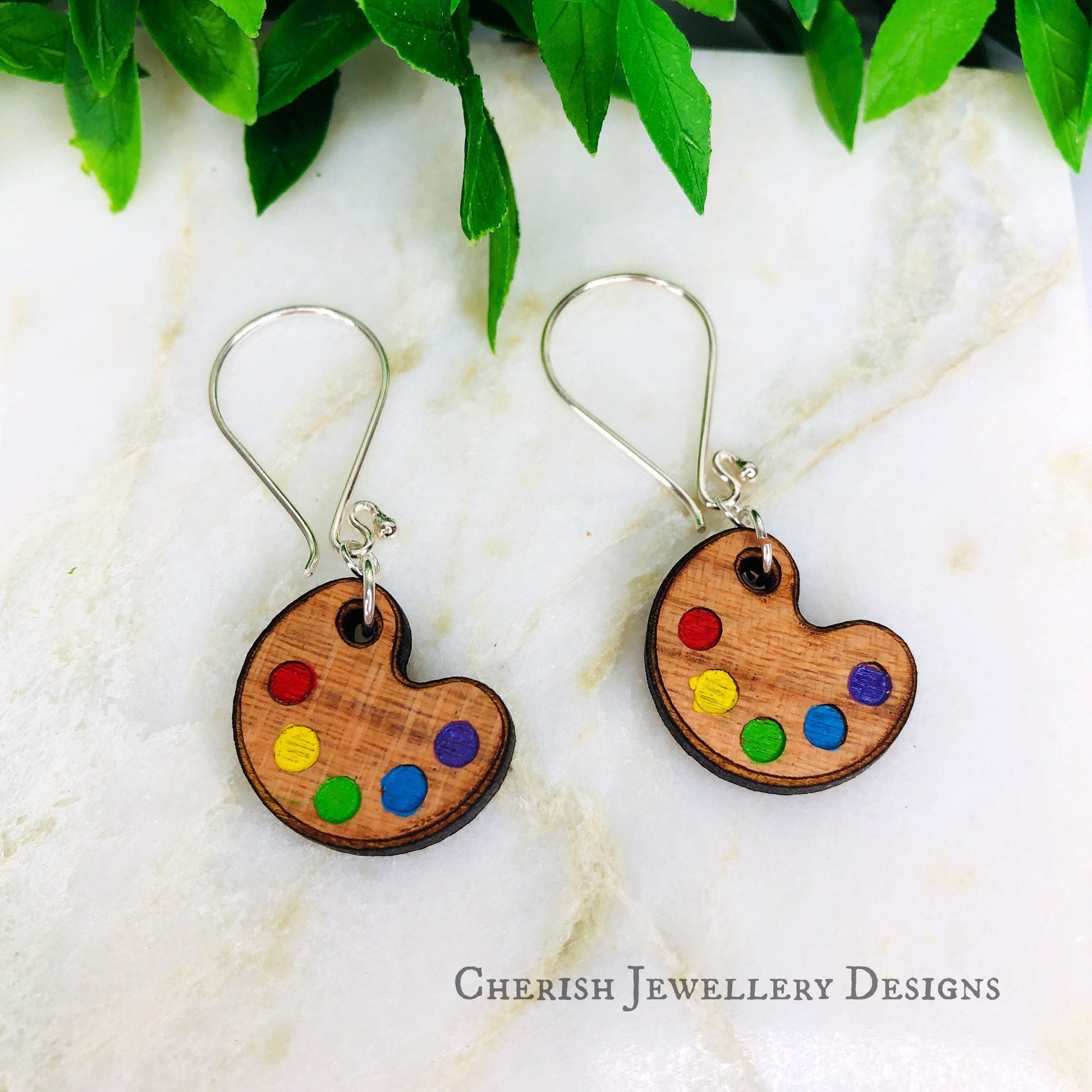Made with bamboo laser cut designs, all my earrings are finished with all sterling silver earrings findings. Each pair of earrings have been hand painted by me.