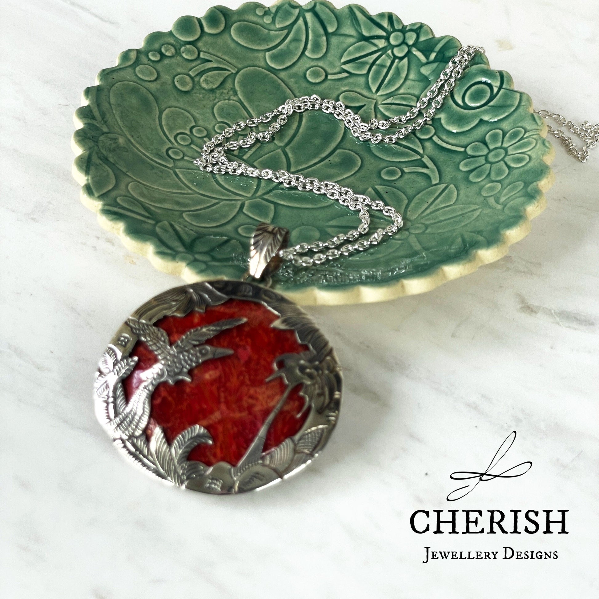 Add a touch of nature to your style with our Sterling Silver Red Coral Bird Pendant! Crafted with high-quality sterling silver and vibrant red coral, this playful pendant features a charming bird design. Attach to a chain or bolt clasp for versatile wear.