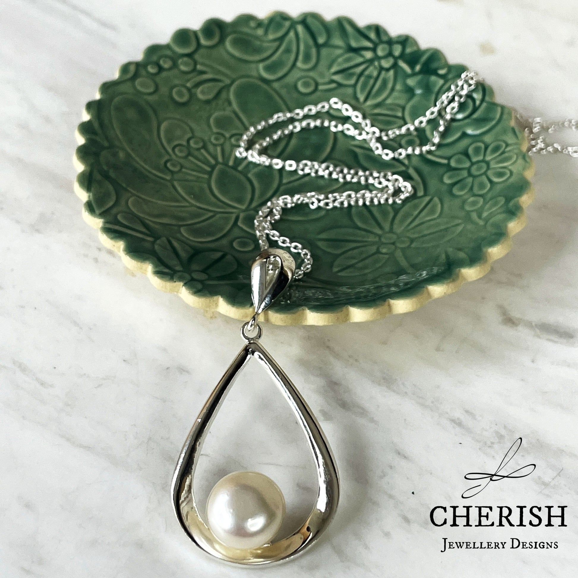 Sterling Silver Teardrop Pendant with Pearl